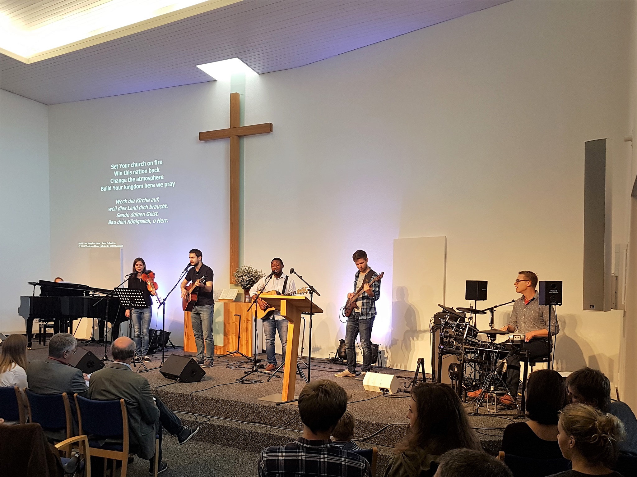Jeden Sonntag um 10.30 Uhr feiern wir unseren Gottesdienst mit Gebet, abwechslungsreicher Musik und einer anregenden Predigt zum Nachdenken. Parallel zum Gottesdienst gibt es ein Programm für Kinder jeden Alters mit Andacht und Spiel. Jeden ersten Sonntag im Monat feiern wir den Gottesdienst mit Mahlfeier.